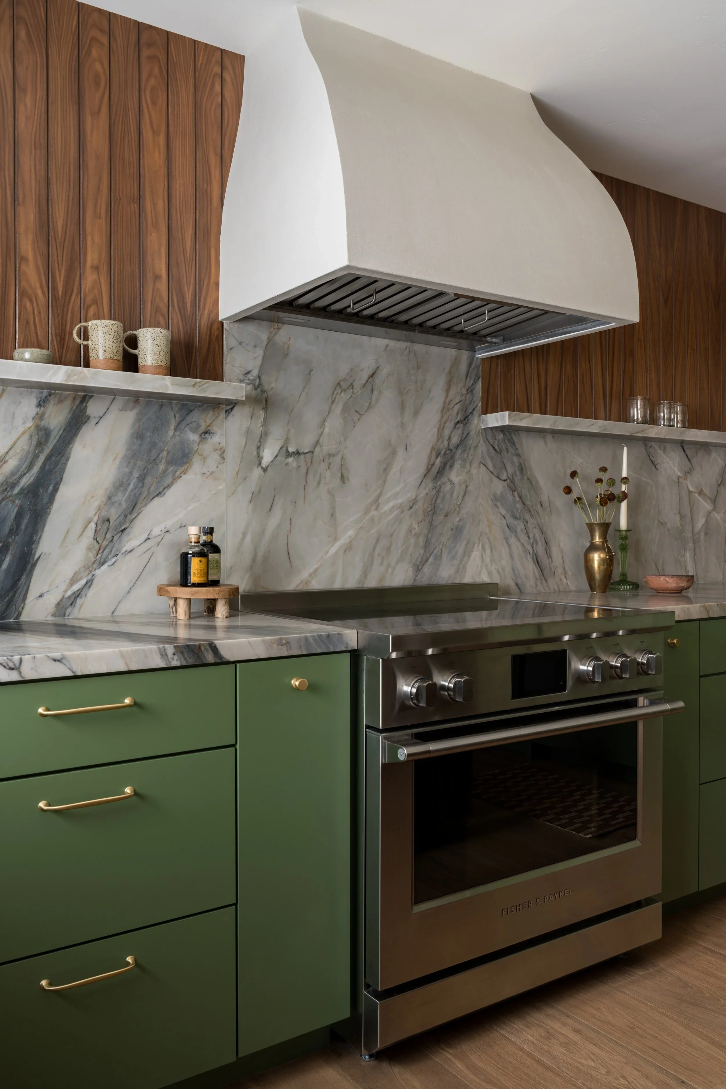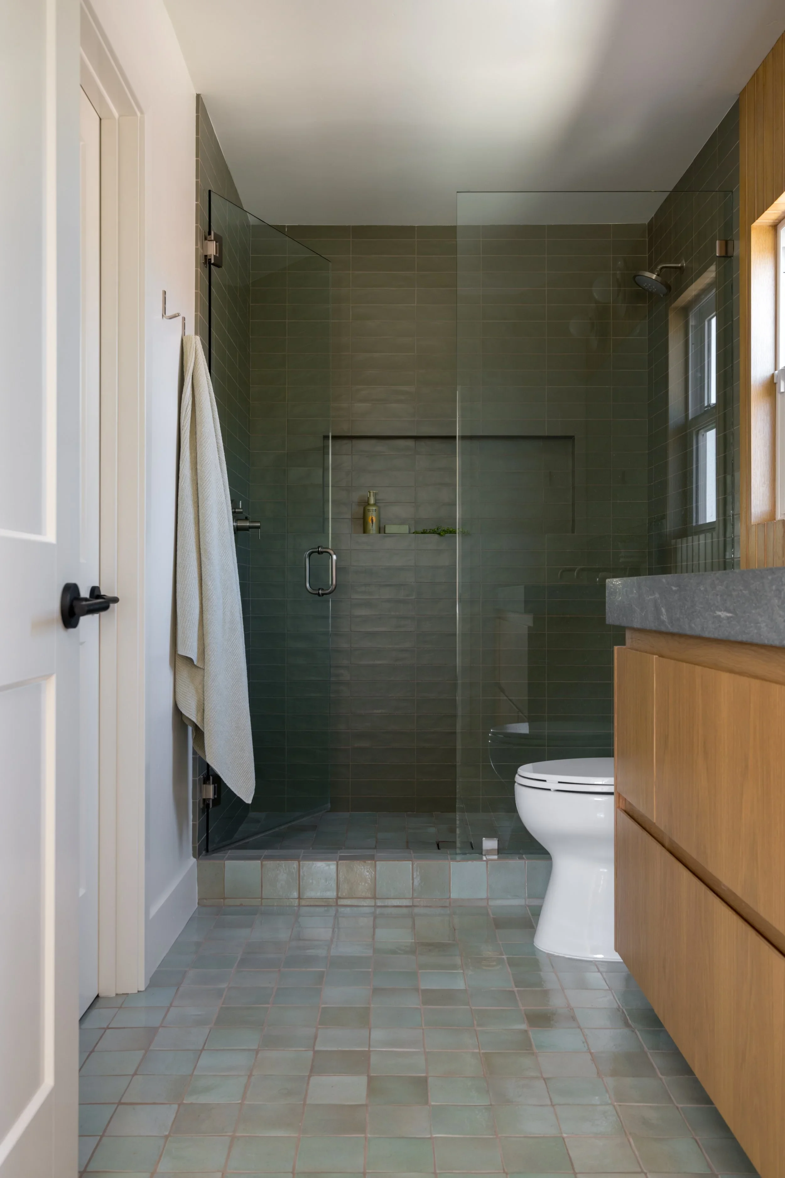 This full home renovation encompasses bold color choices and layers of materiality for a cozy, warm and inviting space. The clients prioritize their time in nature and wanted to emphasize that through their color palette and material selections.