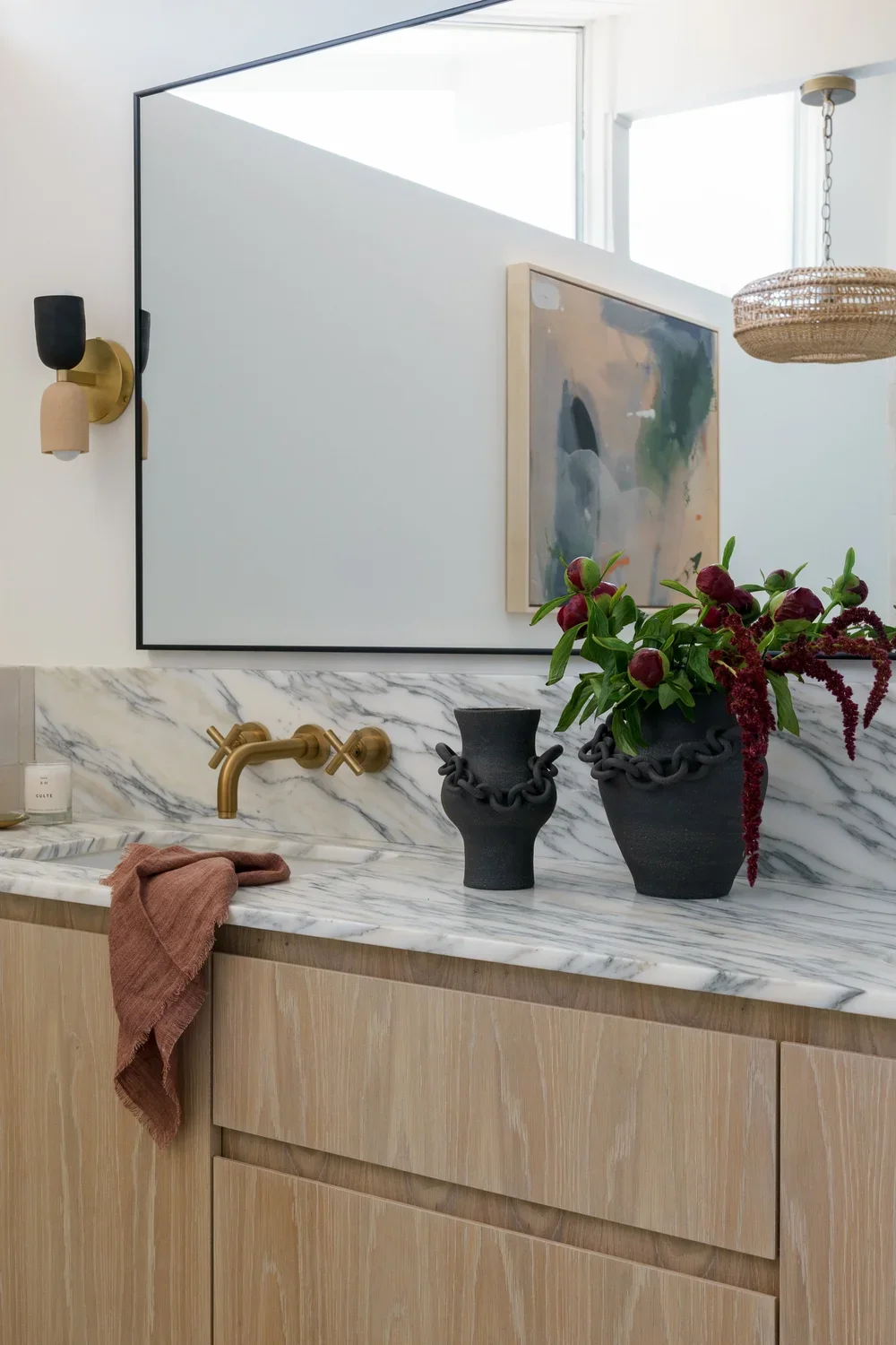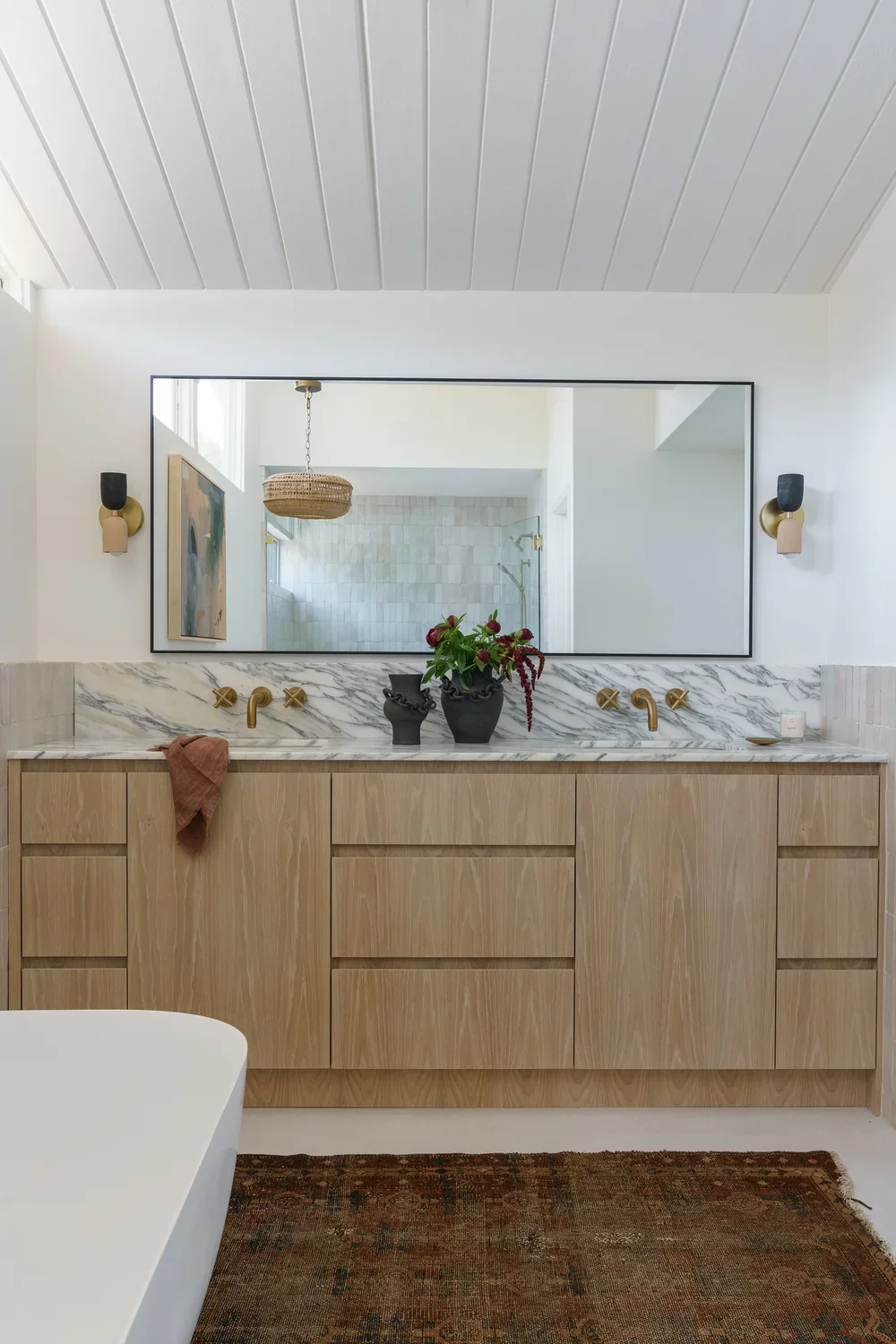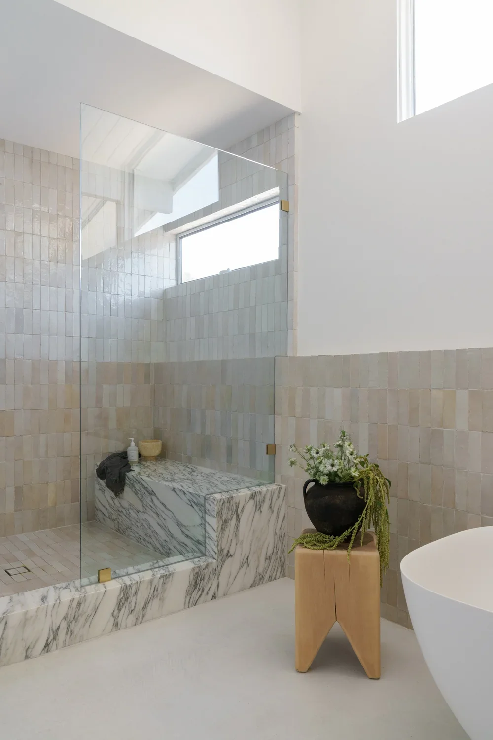 A single bathroom gut renovation focusing on natural materiality and classic choices with a modern twist.