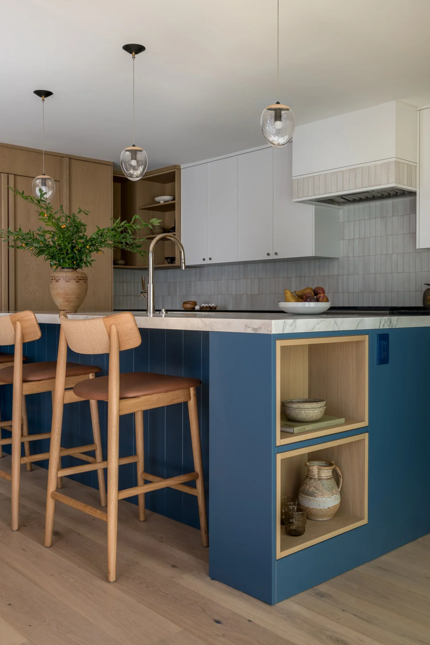 Fresh, modern, and colorful, this main floor renovation opened up dated spaces and closed off walls. Now with an expansive floor plan, this young family can enjoy hosting and entertaining in a space that brings them happiness and much more comfort.