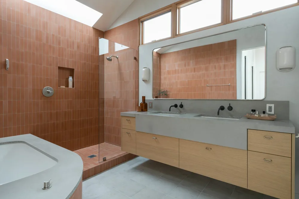 Neutral, yet colorful, layered and maybe a bit retro modern, this full home renovation encompasses an earthy palette with exciting surprises around every corner. We enjoyed colorful tile patterns, saturated hues, and playful elements each step of the way.