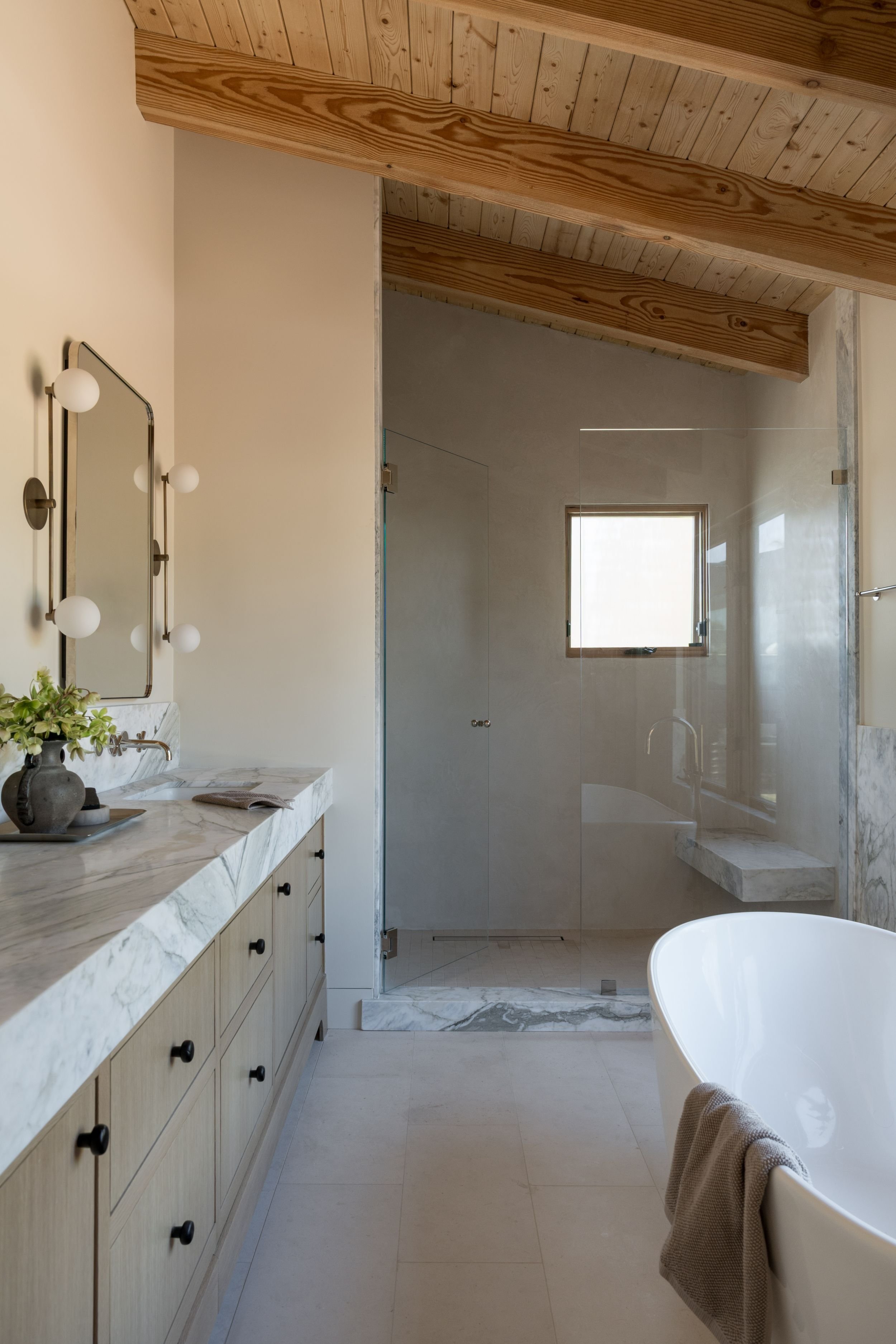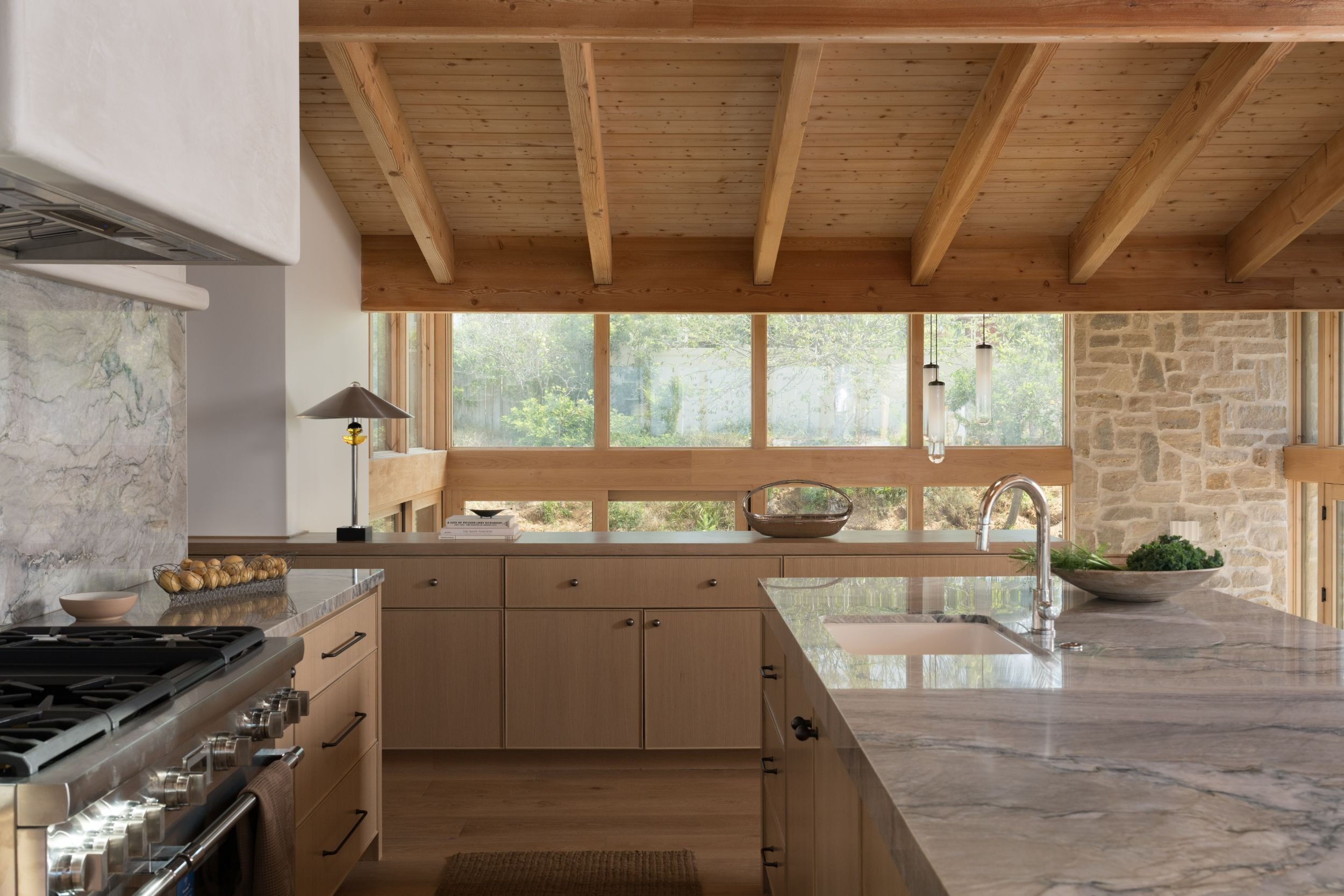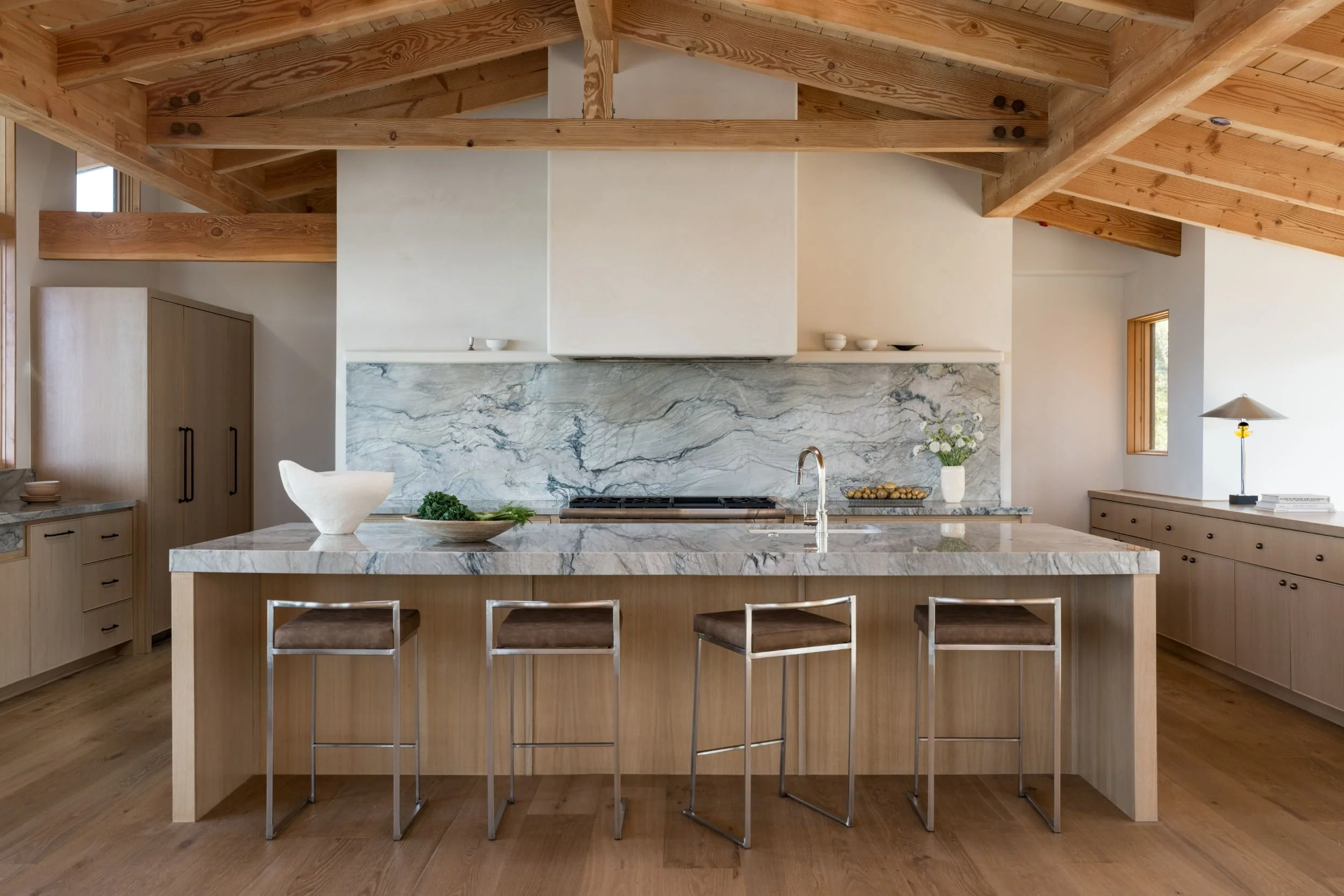A full renovation of an existing coastal home in Leucadia, designed to capture expansive ocean views and feel deeply rooted in its natural surroundings. Warm wood and stone define the exterior, while extensive ceiling cladding carries texture and warmth throughout the interior. Neutral in palette and clean in line, the result is a serene, understated residence where contemporary living and a strong connection to place feel inseparable.