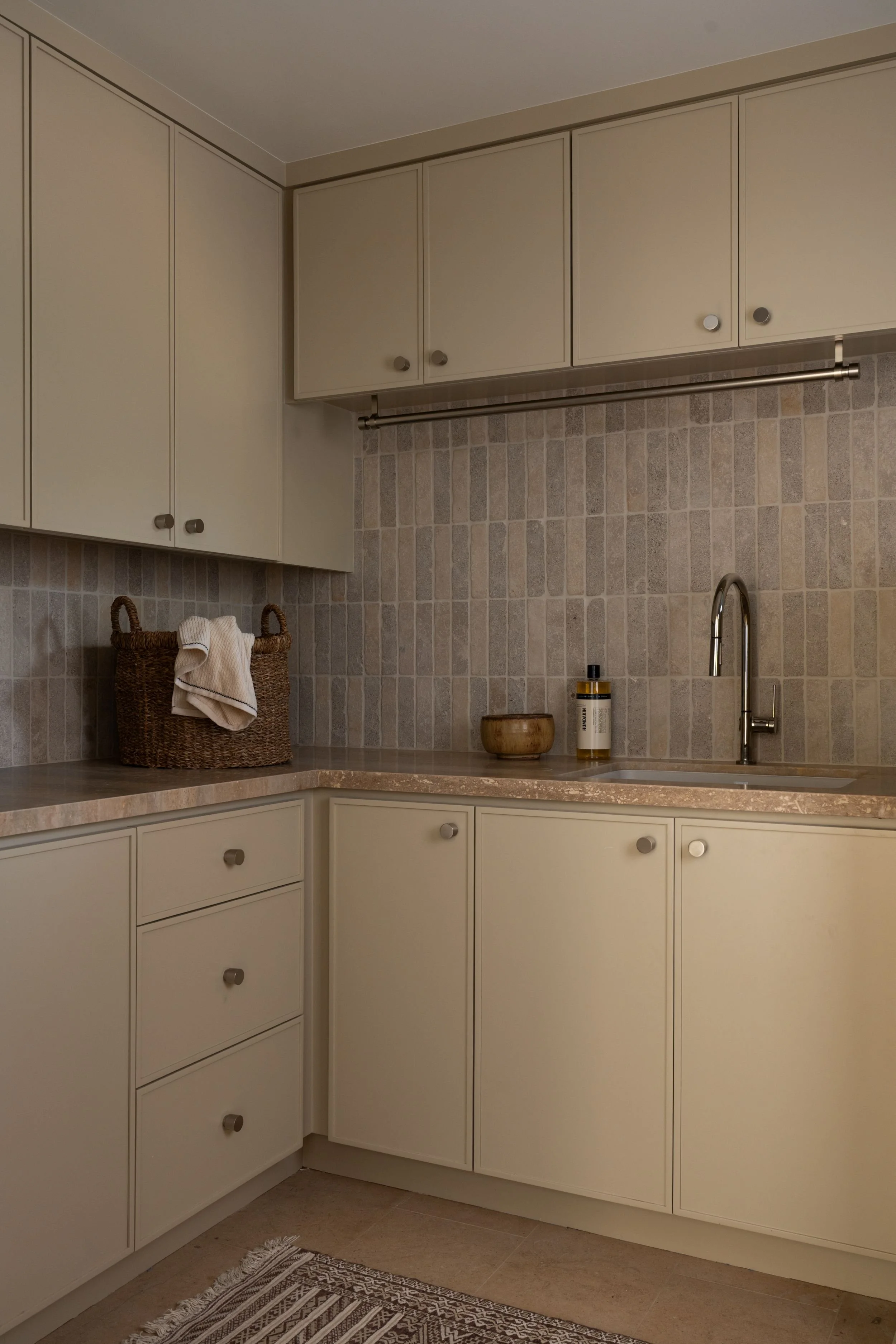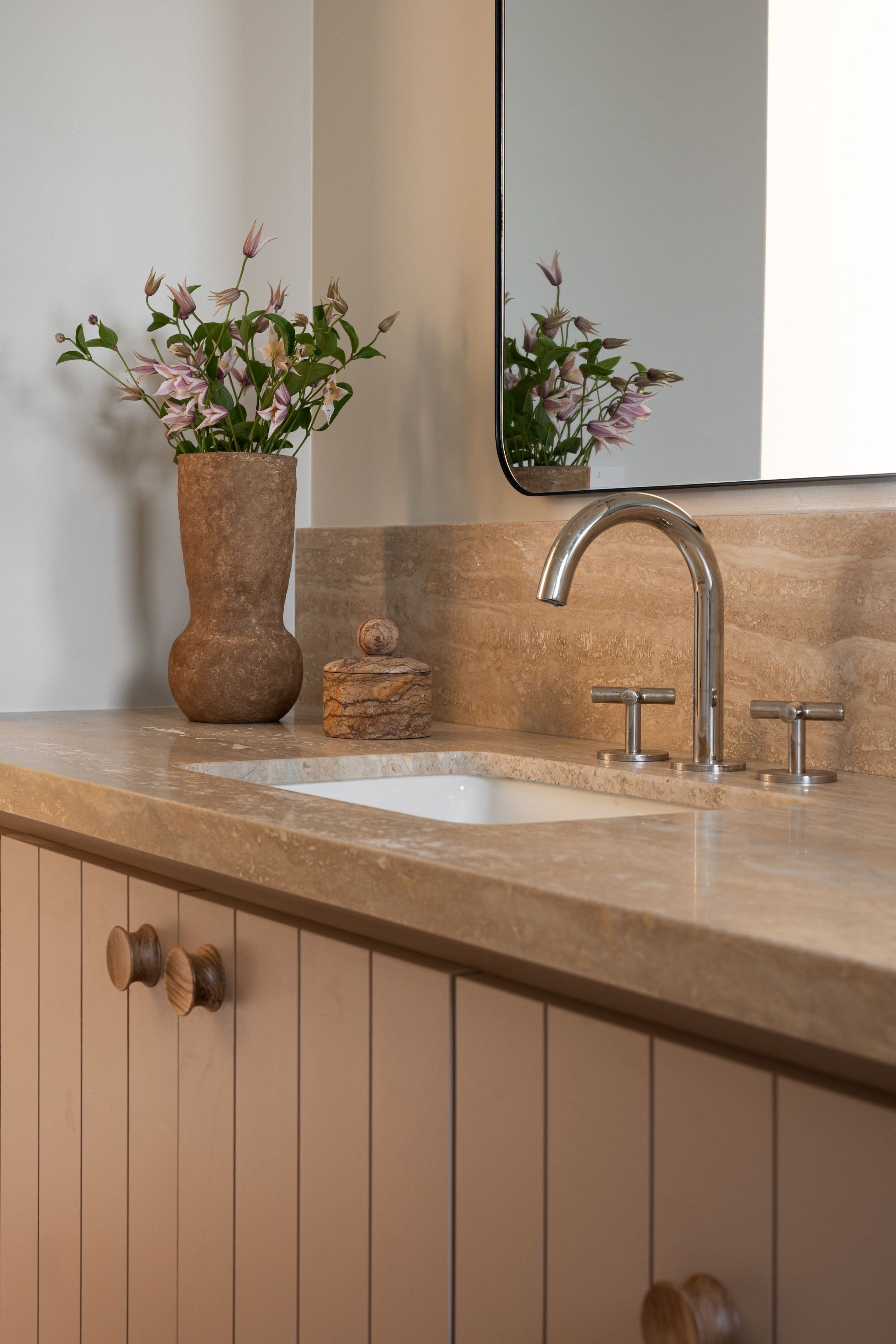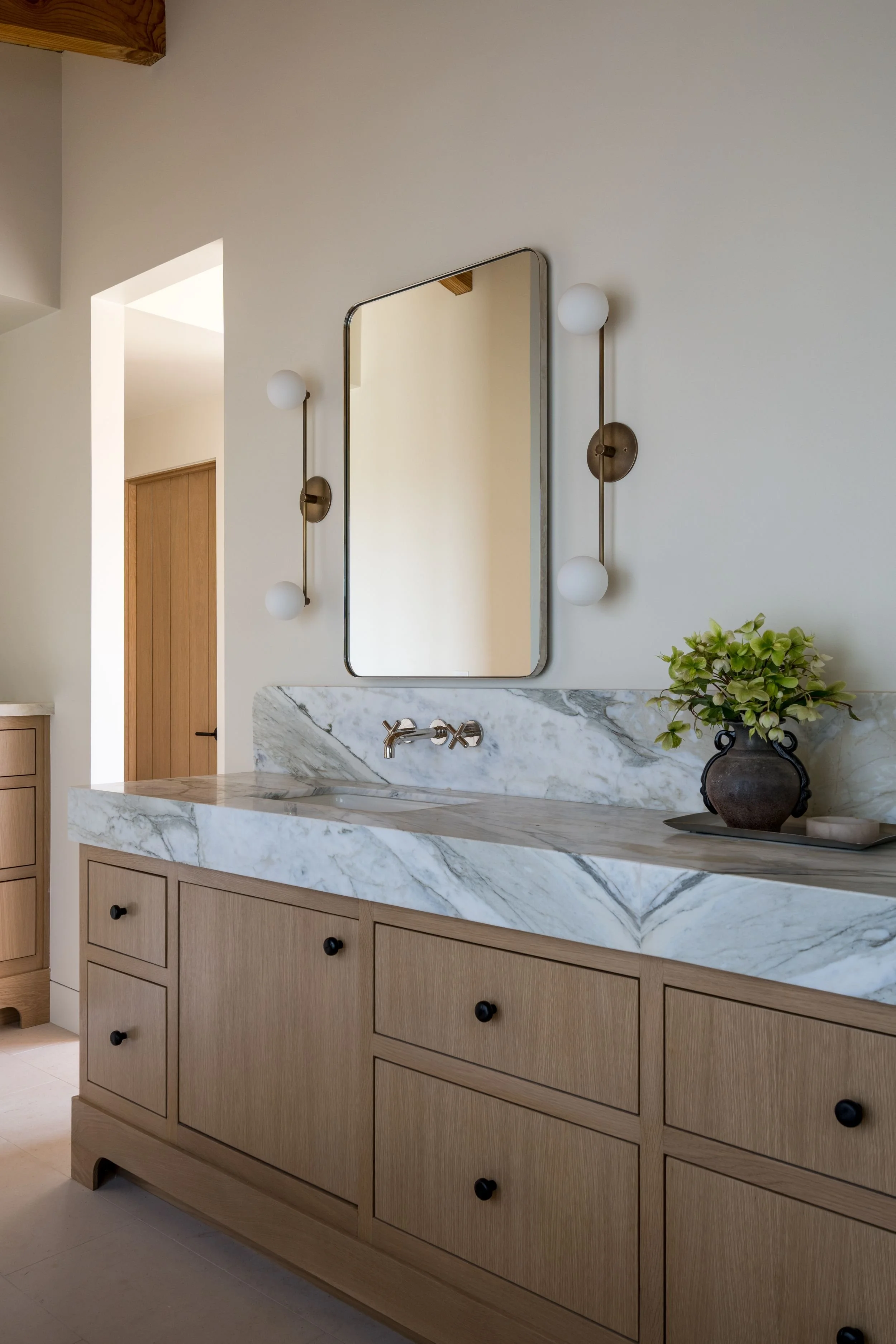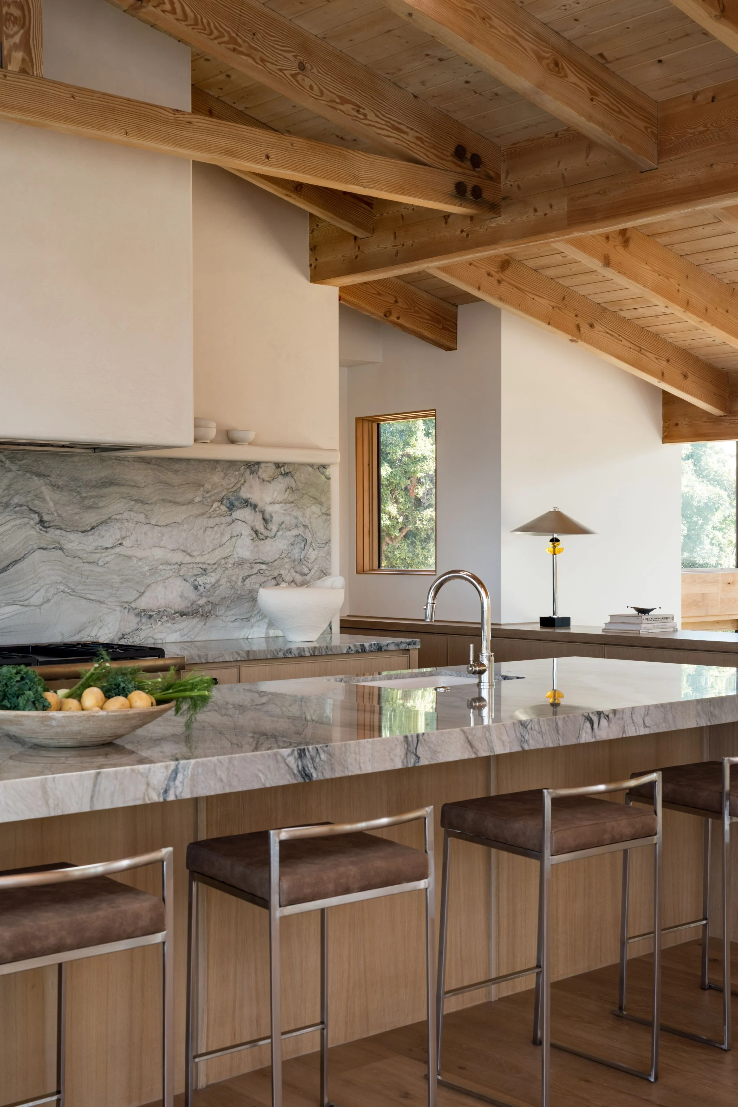 A full renovation of an existing coastal home in Leucadia, designed to capture expansive ocean views and feel deeply rooted in its natural surroundings. Warm wood and stone define the exterior, while extensive ceiling cladding carries texture and warmth throughout the interior. Neutral in palette and clean in line, the result is a serene, understated residence where contemporary living and a strong connection to place feel inseparable.