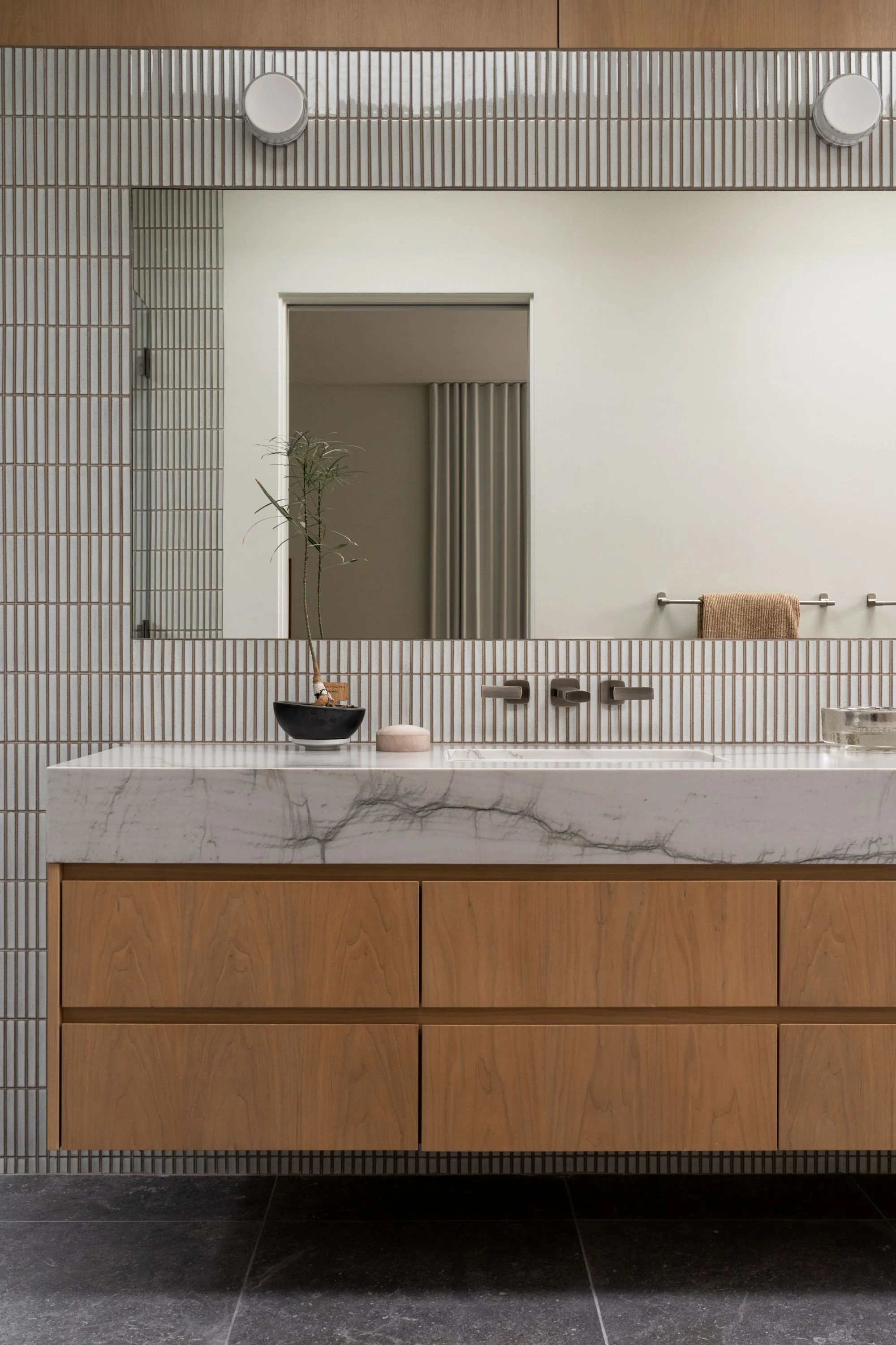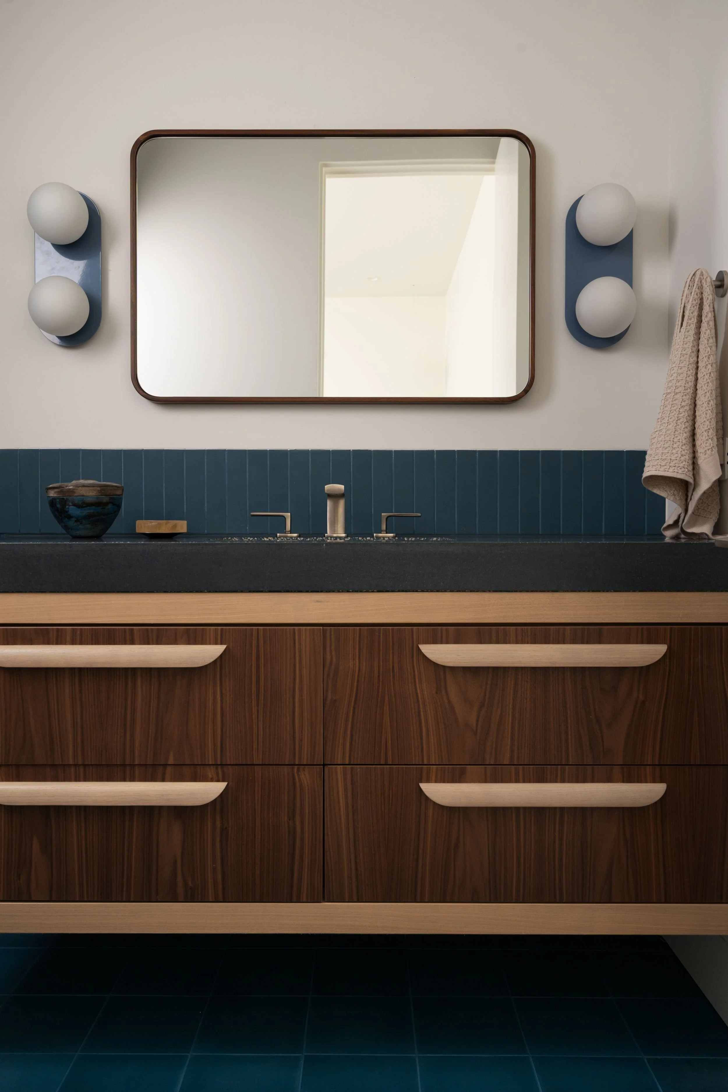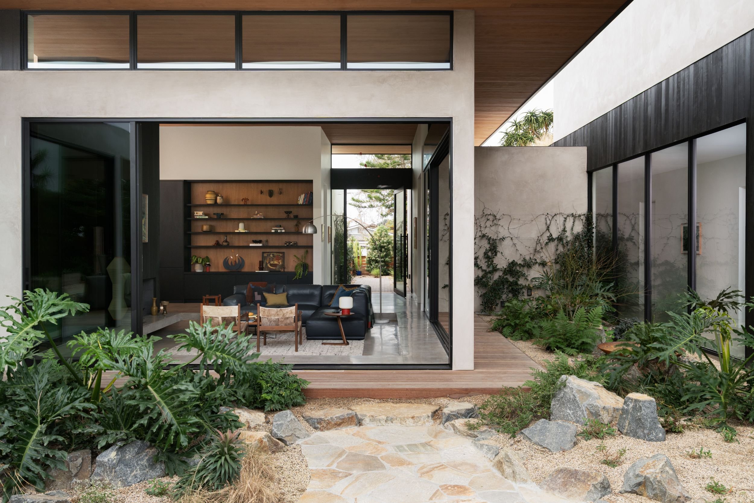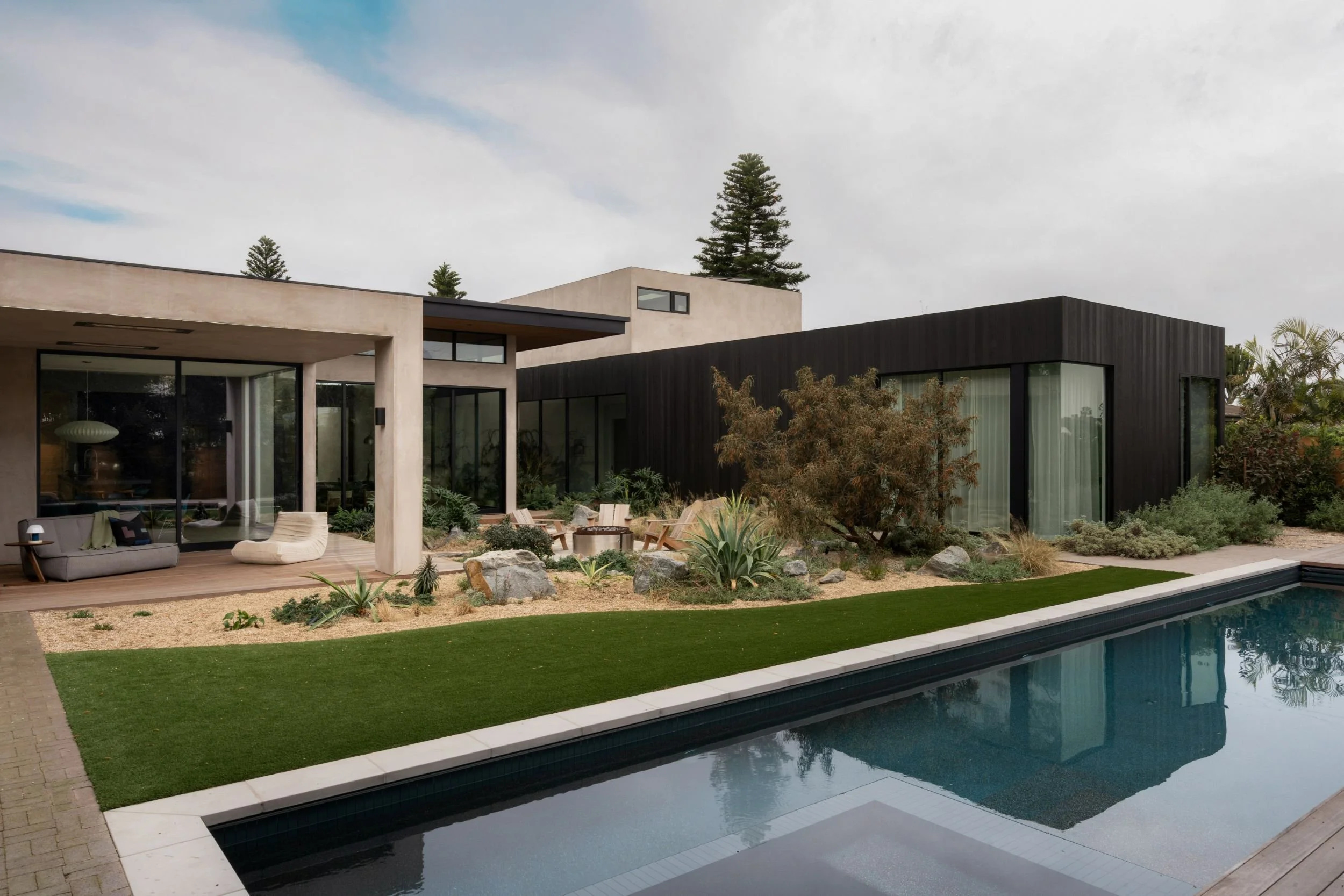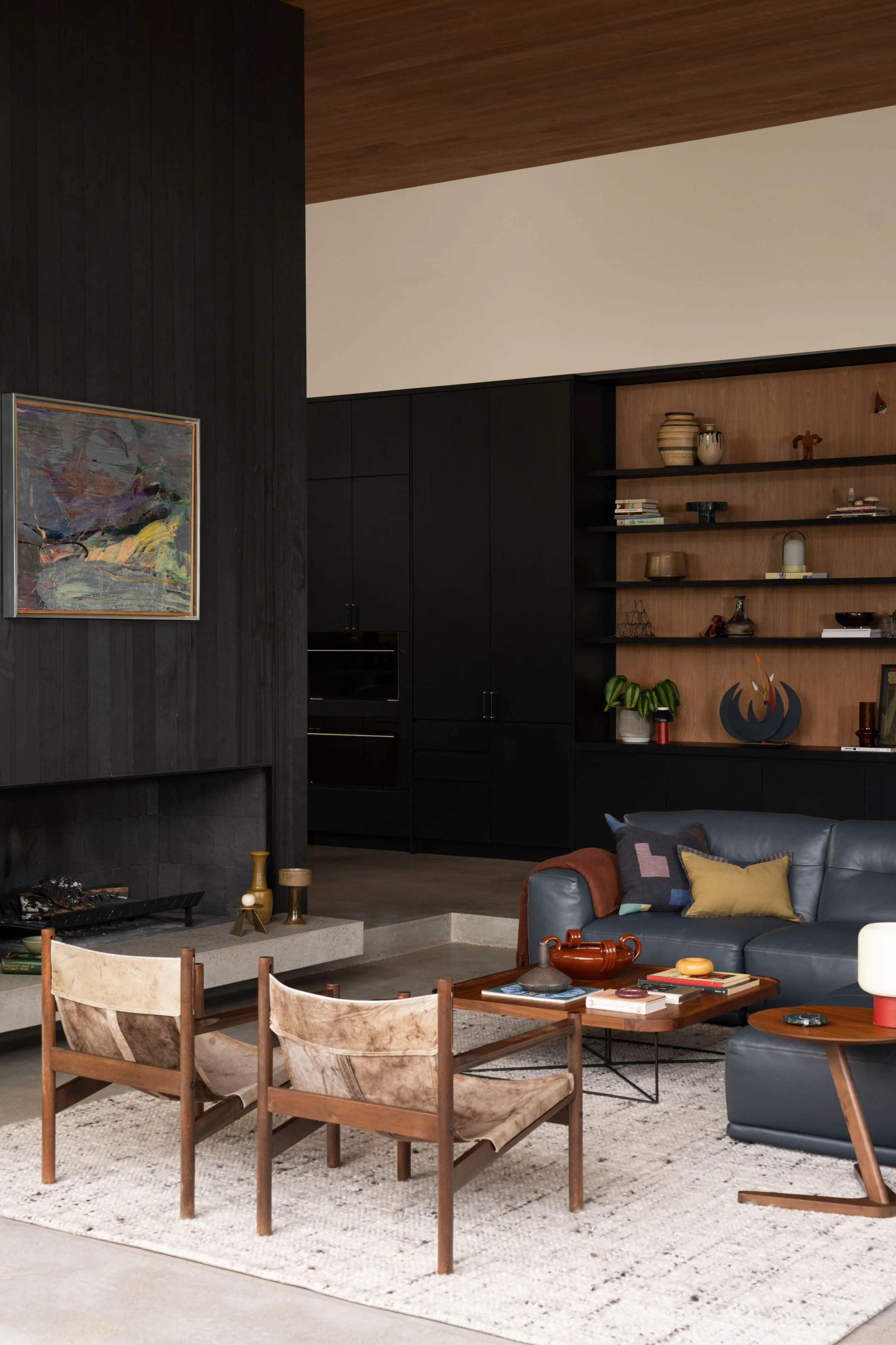 A modern interior designed to complement the thoughtful architecture envisioned by Field X Studio. Clean-lined and structured, the palette leans at times monochromatic, creating a calm, cohesive backdrop layered with vintage accents and collected pieces that reflect our well-traveled clients’ story.